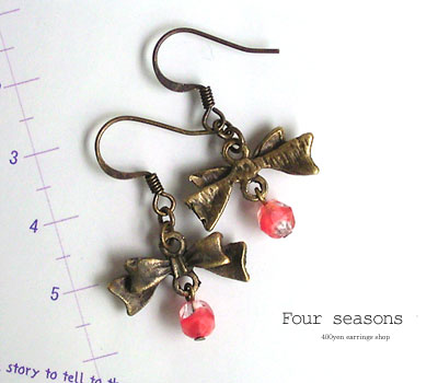 ※リボンパーツの裏側は平ら(?)です。 2枚目画像右側が裏面になりますので、ご参照ください。 ※こちらの商品は3枚目画像右の赤です。 他の色は別ページにて販売しております。 ※下のビーズは、不透明赤色のガラスと透明のガラスのマーブルです。 色の割合、混ざり具合などは商品によって異なります。