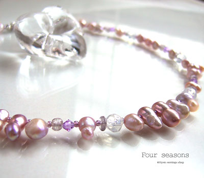 ![]() ※2段目左側の画像は、背景の四角が一片1cmになっています。 大きさのご参考にどうぞ。 ※パールは全て淡水パールです。 天然素材のため、大きさ、形、色などが若干異なります。 また、シワ、凹みなどが見られます。形はかなりランダムです。ご了承ください。 ツヤなどは比較的綺麗なのですが、シワ、凹みなど多く、形もいびつなため、 パールとしての品質はあまり良くないと思います。(4枚目写真をご覧ください。) 形などが揃っていないので、若干カジュアルな印象です。 天然ならではの不ぞろいな感じをお楽しみいただける方に。